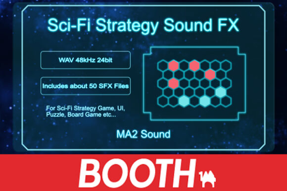 サウンド素材集 ゲームアプリや映像制作で使用可能なサウンド素材集です。クリックすると各販売サイト(BOOTH・Unity Asset Store)へジャンプします。 Sci-Fi Strategy Sound FX SF的な世界観の戦略ゲーム(ストラテジー)やパズルゲームに最適な効果音素材集 ¥2,000 555 UI Sound FX ゲームアプリのUI効果音、動画・映像のワンポイントに最適な効果音素材集 ¥500 Cute Simulation SFX 可愛いUI効果音や、感情表現の効果音が入った育成ゲームに最適な効果音素材集 ¥800 Twinkle Sound FX 星の輝きのようなキラキラした効果音がセットになった効果音素材集 ¥1,500 8-Bit RPG Sound Pack 全楽曲3音+ノイズのチップチューンで制作された2DレトロRPG向けのBGM素材集 ¥1,500 Attack & Magic SFX アクションゲームやRPGに最適な、攻撃音と魔法音がセットになった効果音素材集。 $24.19